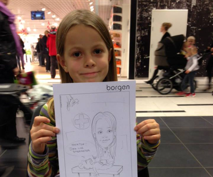 Vi skaber karikaturer af dine gæster på stedet. Kunstneren sætter sig med tegneblok og blyanter og indfanger personligheden hos hver model.